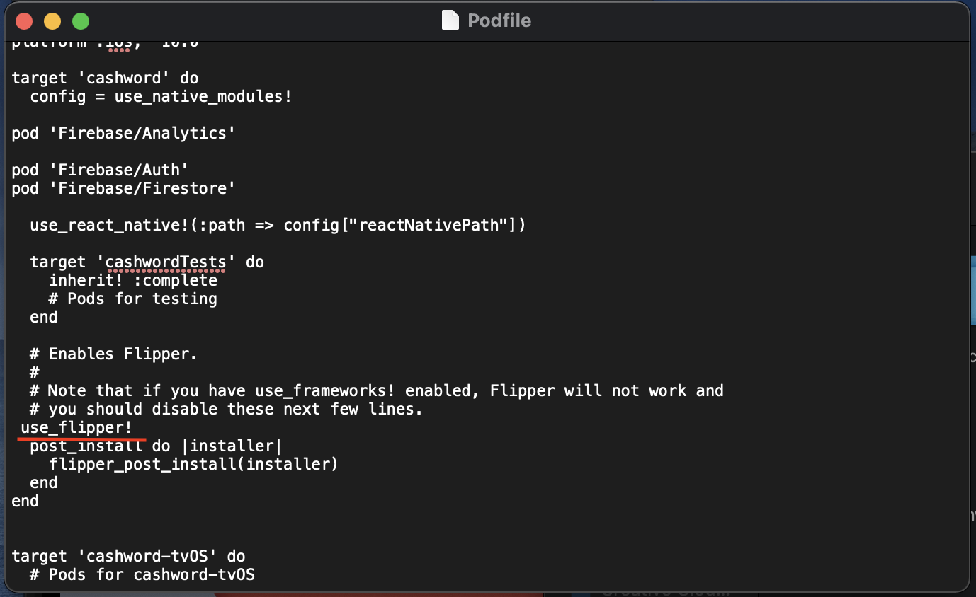 1) Podfile에서 use_flipper! 부분을 아래 코드로 수정